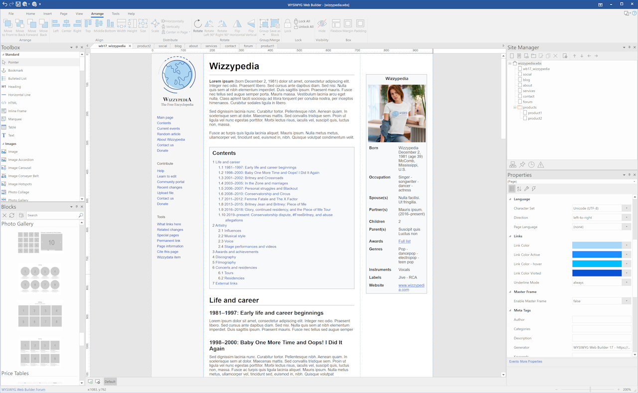 - Опції налаштування: WYSIWYG Web Builder пропонує широкі можливості налаштування, дозволяючи користувачам розробляти кожен аспект свого веб-сайту відповідно до свого корпоративного стилю або особистих уподобань. Від шрифтів і кольорів до анімації та ефектів, програмне забезпечення забезпечує повний контроль над елементами дизайну.